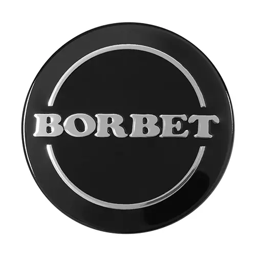 Simple black hub cap with shiny silver BORBET logo. Can be used on all standard designs with a hub cap diameter of 68.4 mm.